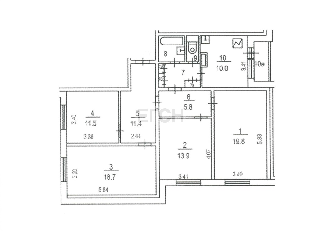 Площадь комнат 11.5 + 18.7 + 13.9 + 19.8 м2