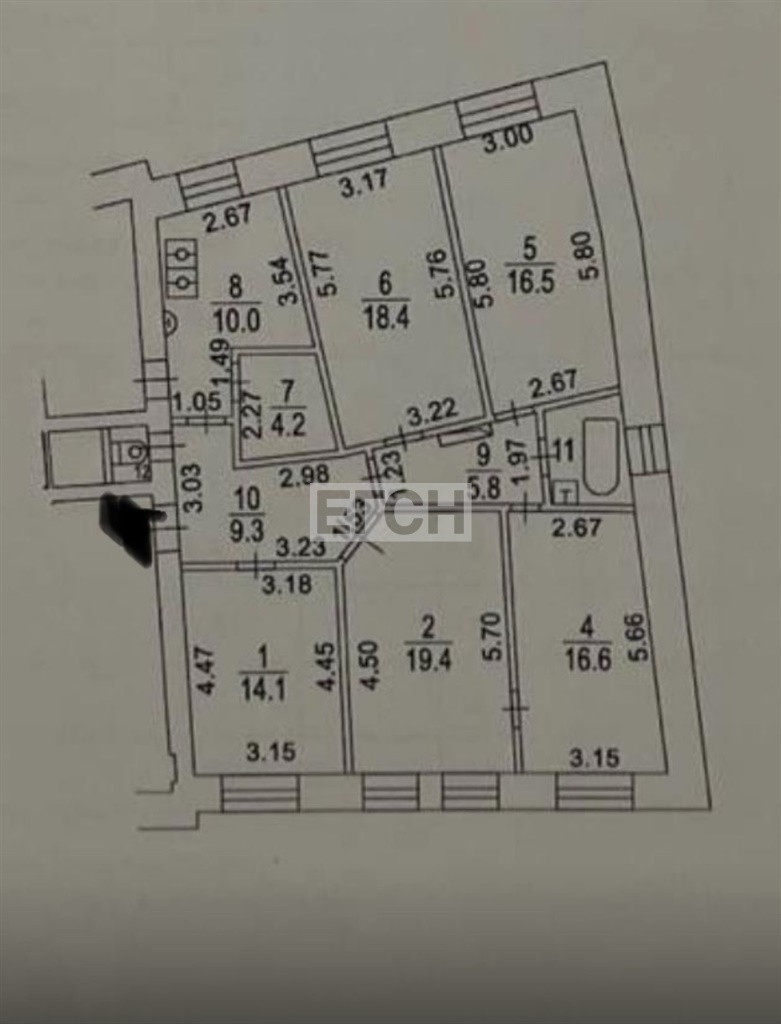 потолками 3,27м, дополнительный выход из квартиры по черной лестнице во двор. Есть возможность присоединить мансардный этаж.