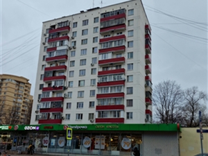 Квартира расположена на 12 этаже 25-этажного монолитного дома. Площадь студии составляет 20 кв. м. из которых 16 кв. м. — жилая площадь а 3 кв. м. занимает кухня. Высота потолков — 28 метра. В квартире один совмещённый санузел есть балкон. Окна выходят во двор.